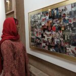The reason for covering the faces of some individuals in the photographs with a red hole shape serves as a metaphor for death and the end of lives taken by war; similar to our immediate reaction when someone dies, covering their face right away.